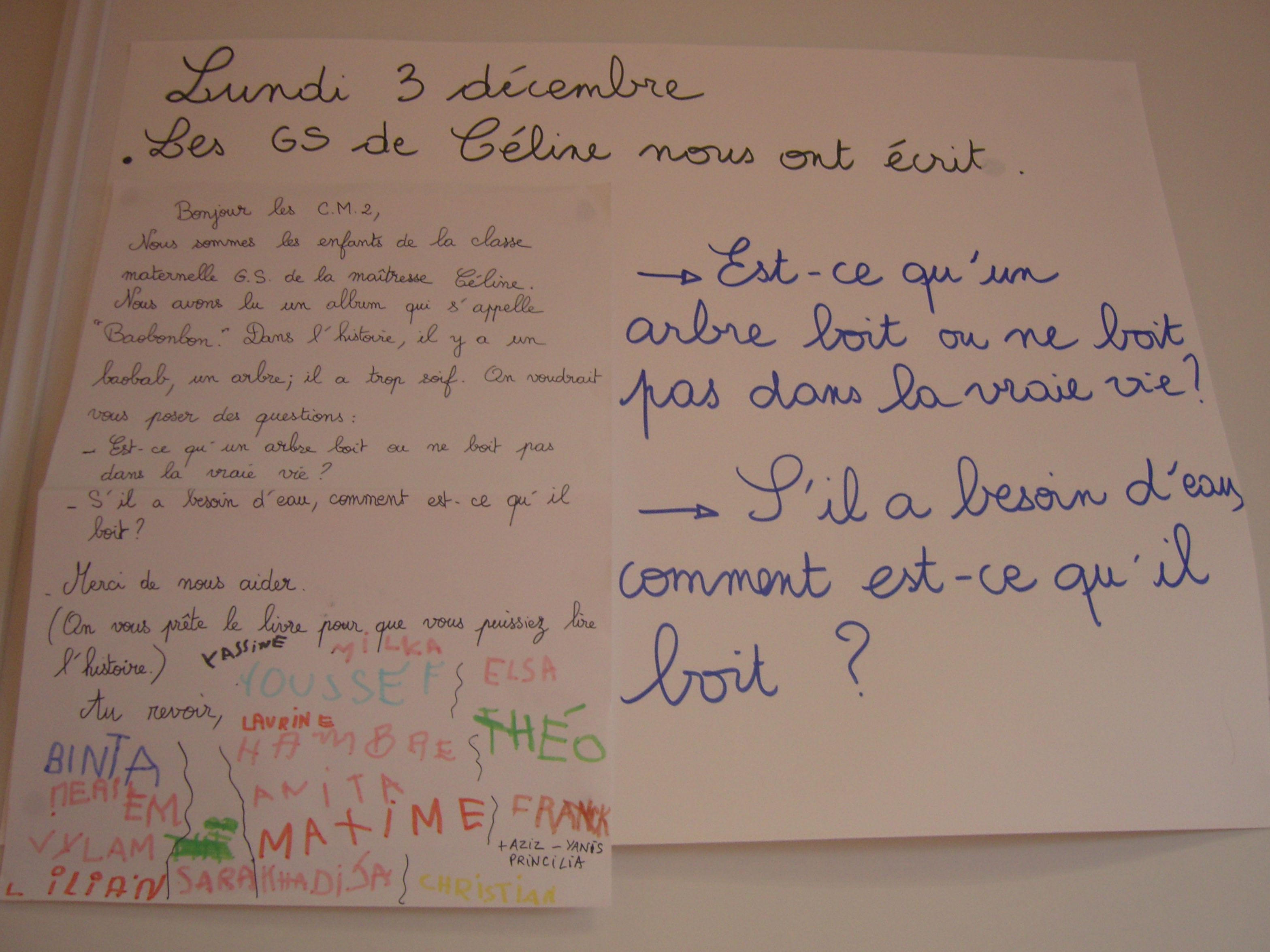 Une lettre d'élèves de GS aux CM