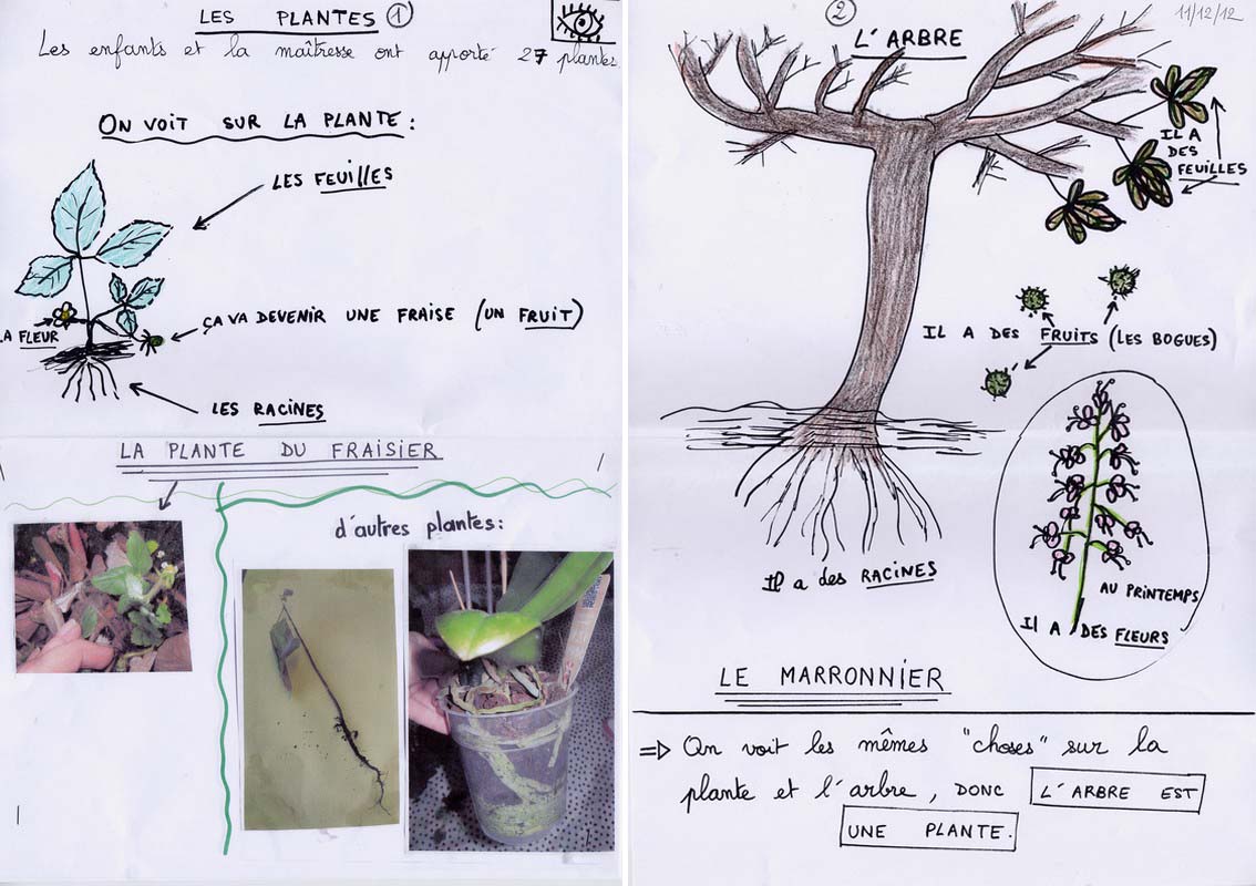 - La diversité des activités permet aux élèves de fixer le lexique relatif aux plantes. L'apprentissage de ce vocabulaire participe à construire la notion "l'arbre est une plante".