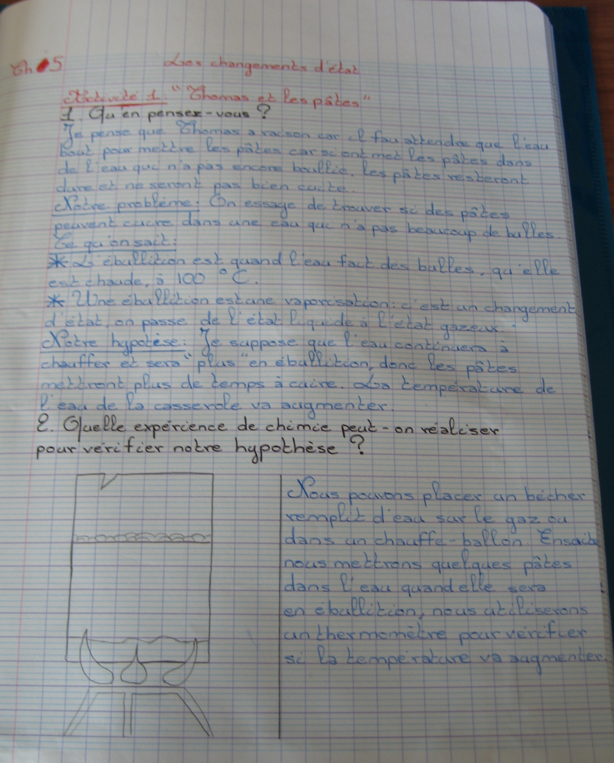 Construction, appropriation du problème de l'ébullition de l'eau. Élaboration d'hypothèses sur le phénomène de l'ébullition.