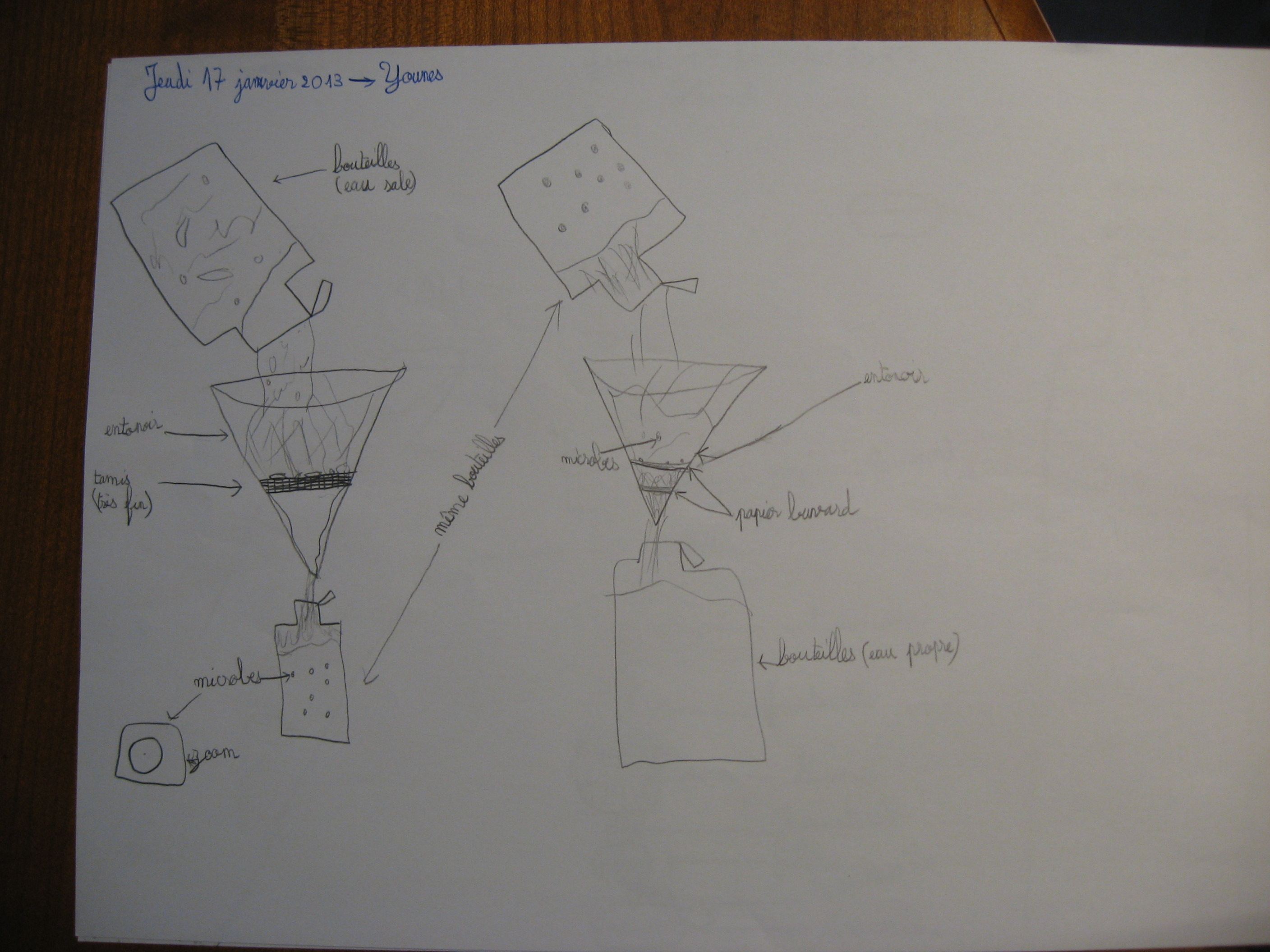 L'enseignant aura le souci de donner l'objectif "rendre l'eau propre", c'est-à-dire plus transparente, plus claire en l'opposant régulièrement à la question en suspens: "sera-t-elle buvable ?"