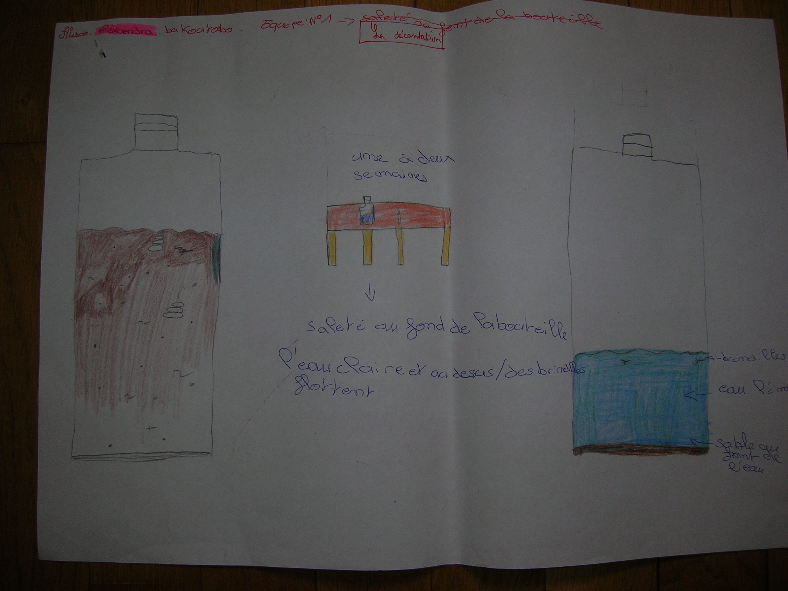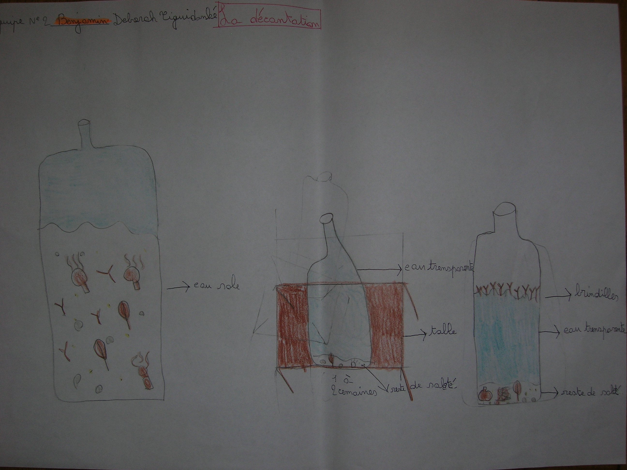 La classe travaille collectivement, sauf au début de la phase 2 où ils dessinent l'eau décantée.