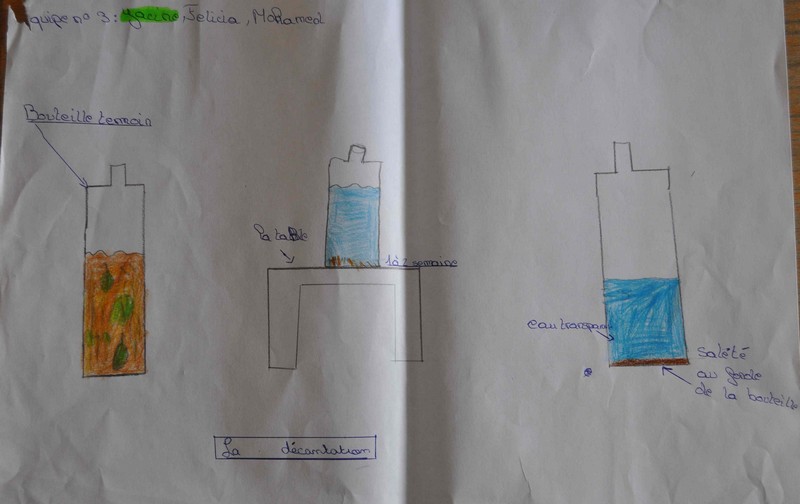 pourra secouer le contenu de la bouteille et la laisser à nouveau reposer : les élèves observent et peuvent anticiper que si on laisse l'eau sale au repos, le phénomène de décantation se reproduira.