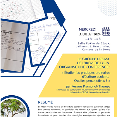 CONFÉRENCE "Étudier les pratiques ordinaires d'écriture scolaire. Quelles perspectives ?"