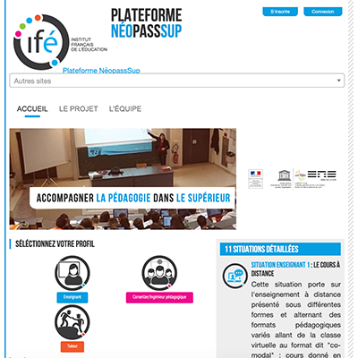 Le projet NéopassSup a pour ambition de participer à la formation des acteurs dans l’enseignement supérieur et à une transformation progressive des modalités d’intervention devant les étudiants avec la création d’un plateforme de formation